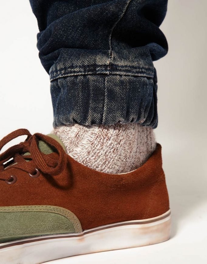 La multe branduri sunt consacrate sosetele cu dungi late, in doua culori. Aceste sosete in doua culori ar putea inbunatati foarte mult intregul Outfit si ar rezolva problema cu “sosetele plictisitoare”. Daca nu va plac din cauza faptului ca ar fi prea colorate, puteti recurge si la sosetele intr-o singura culoare, o culoare care se regaseste in Outfitul vostru.
